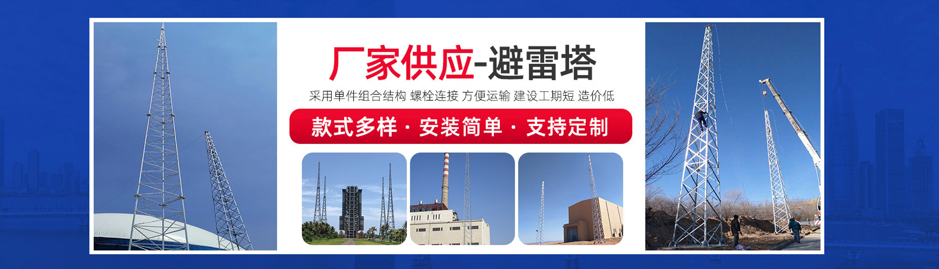 熱銷產品: 廣播電視發射塔 輸電線路電力鐵塔 避雷塔 煙筒塔 監控塔 瞭望塔 美化天線罩 測風塔 電力鋼構架 仿生樹 定做熱鍍鋅異形件 一體化機房 通訊塔 投光燈塔 雷達塔 移動通信車